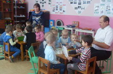 Не далеко от нас находится сельская библиотека. Мы дружим с книгами, которые там живут. Часто ходим в гости. Хозяин дома книг очень добрый. Сегодня он к нам пришел сам. И не просто так, а с подарками. Принес для нас книжки. Они очень интересные, помогают расти и развиваться.