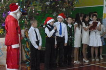 В соответствии с программой проведения новогодних праздников с участием школьников начальных и средних классов в школе проводились в течение двух дней праздники новогодней елки, которые ждали дети с нетерпением, а встреча нового года завершилась Новогодним Бал-Маскарадом , организованном для старшеклассников . На фото-фрагменты участников Новогодних представлений.