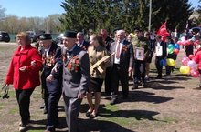 “Үлемсез полк “маршы һәйкәлләр яныннан узды.Һәйкәлләргә чәчәкләр куелды.Бәйрәмнең дәвамы булып “ Җиңү кайтавазы мәңгелек “исеме астында театрлаштырылган тамаша күрсәтелде. Бәйрәм чәй өстәле янында тәмамланды.