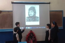 Якташыбыз һәлак булган көнне 5 нче сыйныф укучылары тарих укытучысы белән берлектә әзерләгән презентация белән таныштырдылар.Алар геройның тормыш һәм сугыш юллары турында сөйләделәр.Соңыннан батыр һәйкәленә винок куелды.
