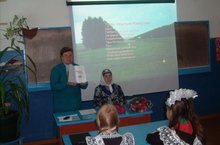“Моя малая Родина” (1-5 кл.), “Мое родное село Новые Какерли” (6-7кл.), 10 –й годовщине трагических событий в г.Беслане (8-9кл.). На уроке были приглашены уважаемые жители села, многодетные семьи, дети военных лет. На урок “Мое родное село Новые Какерли” была приглашена Халилова Сария, которая рассказала о трудной жизни военныхи послевоенных лет, о безвести пропавшем сыне в мирное время и многом другом.