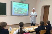 В рамках недели здорового питания в начальных классах провели беседу с участием повара школы Ахметзянова А.З. на тему «Секреты здорового питания». В ходе беседы говорили о значении питания для человека,соблюдении режима питания.