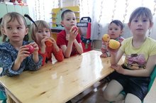 Мы вместе с детками провели беседу о пользе витаминов, просматривали продукты, в которых содержатся витамины, поиграли в игру "Что растет на огороде" и попробовали их на вкус.