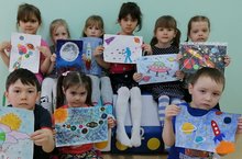 В целях нравственно-патриотическому воспитанию в детском саду провели конкурс рисунков по теме"Среди звёзд и планет", посвящённый Дню космонавтики.