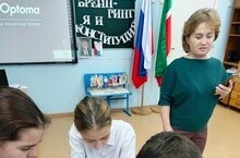 В целях формирования у обучающихся активной жизненной позиции гражданина своей страны, учитель истории и обществознания Маркова С. П. провела со старшеклассниками брейн-ринг на тему "Я и Конституция". Игра состояла из 4 туров, в ходе которых команды отвечали на различные вопросы из истории конституций, по содержанию действующей Конституции. Хотя тема занятия довольно сложная, ребята всё же справлялись с заданиями -