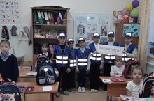 ЮИДовцы подарили первоклассникам фликеры, изготовленные своими руками и прикрепили их на рюкзаки.