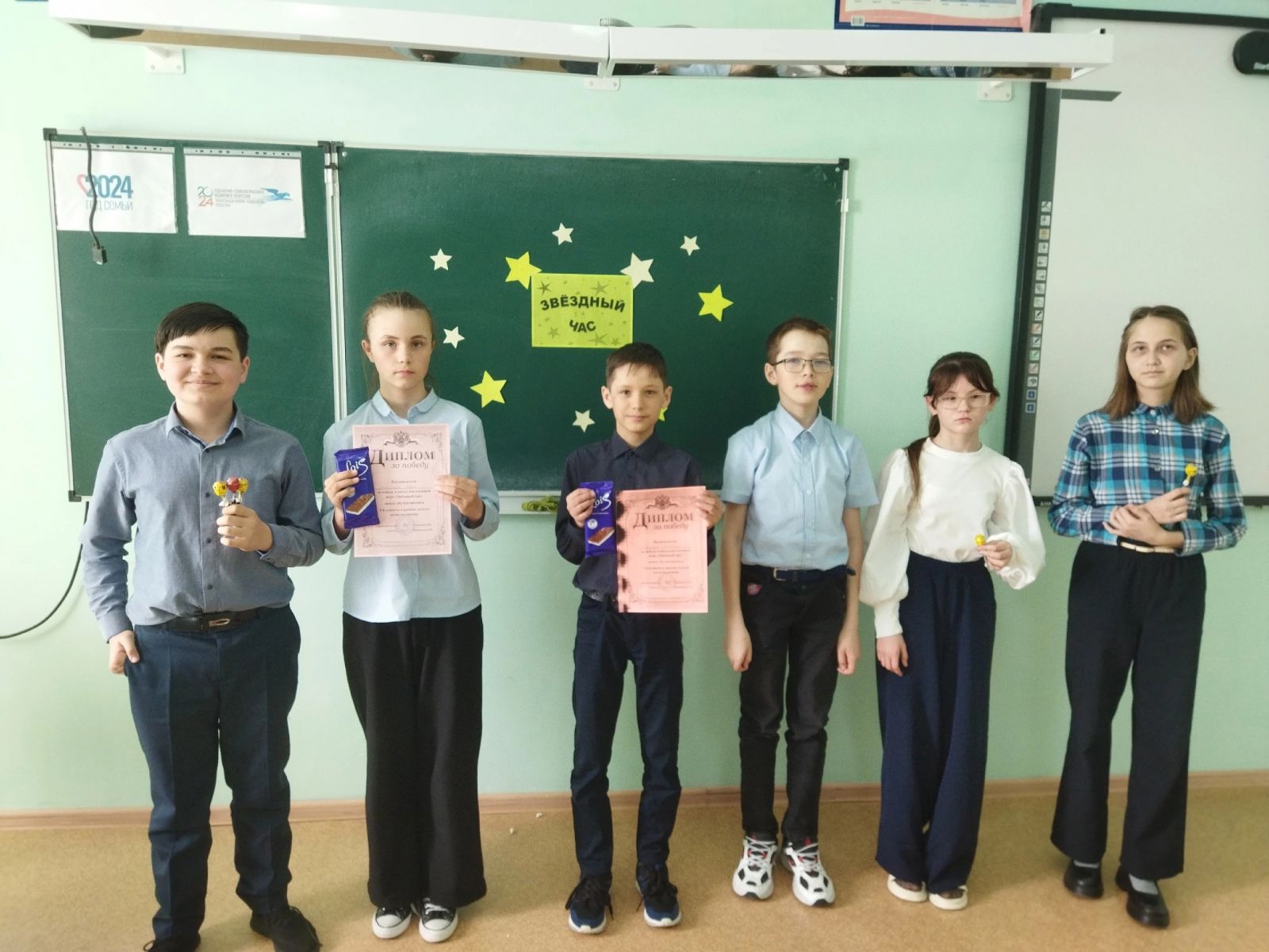 - "Звëздный час" для обучающихся 5-6 классовнаук, победителем стал Максимова С. И Юманов В., призёрами - Молгачев М. и Павлов П.