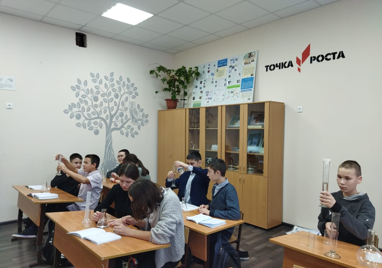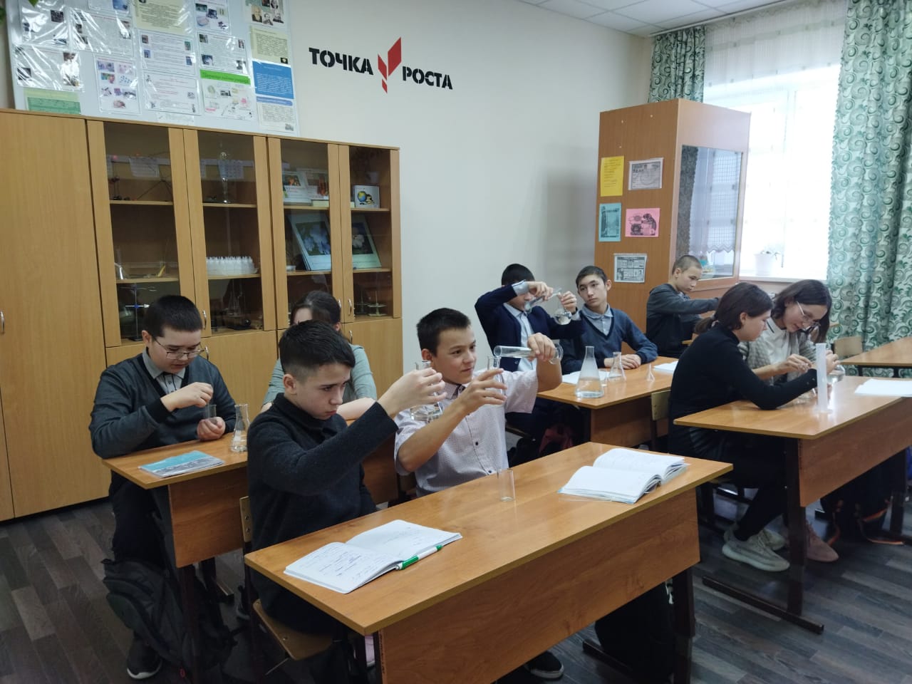 - "Посвящение в химики" с использованием оборудования ЦО "Точка роста" для обучающихся 8 класса, победителем стал Фуражкин А., призёрами - Долгова А. и Дергунов А.