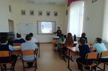 Сегодня в школе прошел музейный урок «Подвиги юных героев в годы Великой Отечественной войны» совместно с районным краеведческим музеем. В ходе урока Усманова Н.Ф., методист по экскурсиям, рассказала о юных пионерах - Героях Советского Союза. Во время презентации демонстрировался фотоальбом с портретами юных героев, выпущенный районным Советом ветеранов.