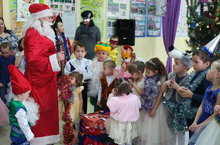 Первыми к нарядно украшенной ёлочке пришли наши маленькие ребята. Новый год – время исполнения заветных желаний, и для малышей ожидание новогоднего праздника связано с предвкушением волшебства от встречи с Дедом Морозом и Снегурочкой. Атмосфера праздника царила в детском саду всю предновогоднюю неделю, и проведённый утренник окунул всех в сказку. Снегурочка своим волшебным колокольчиком пригласила гостей на праздник. К малышам пришла Лисичка, которая хотела вместе со всеми встречать Новый год и веселила всех играми и забавами. И, конечно, кульминацией утренников была встреча с главным героем праздника – Дедом Морозом , для которого малыши с особым удовольствием пели, читали стихи и танцевали. -