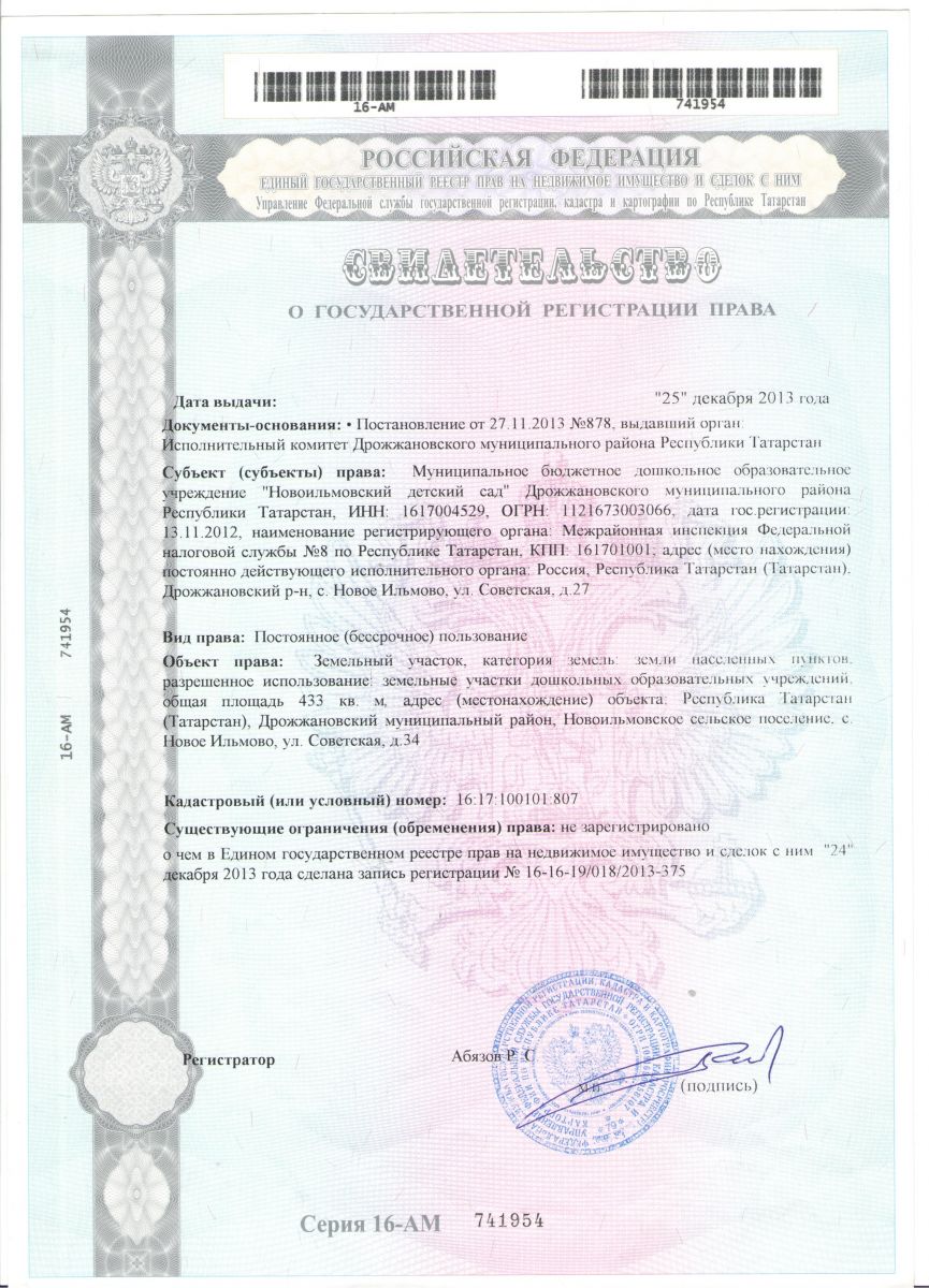 Свидетельство о государственной регистрации права от 25 декабря 2013 г.