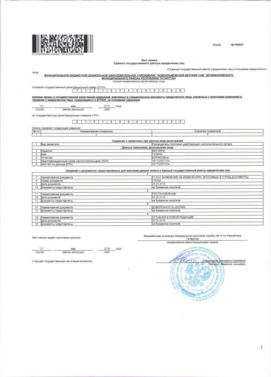 Лист записи Единого государственного реестра юридических лиц от 31 мая 2018 года
