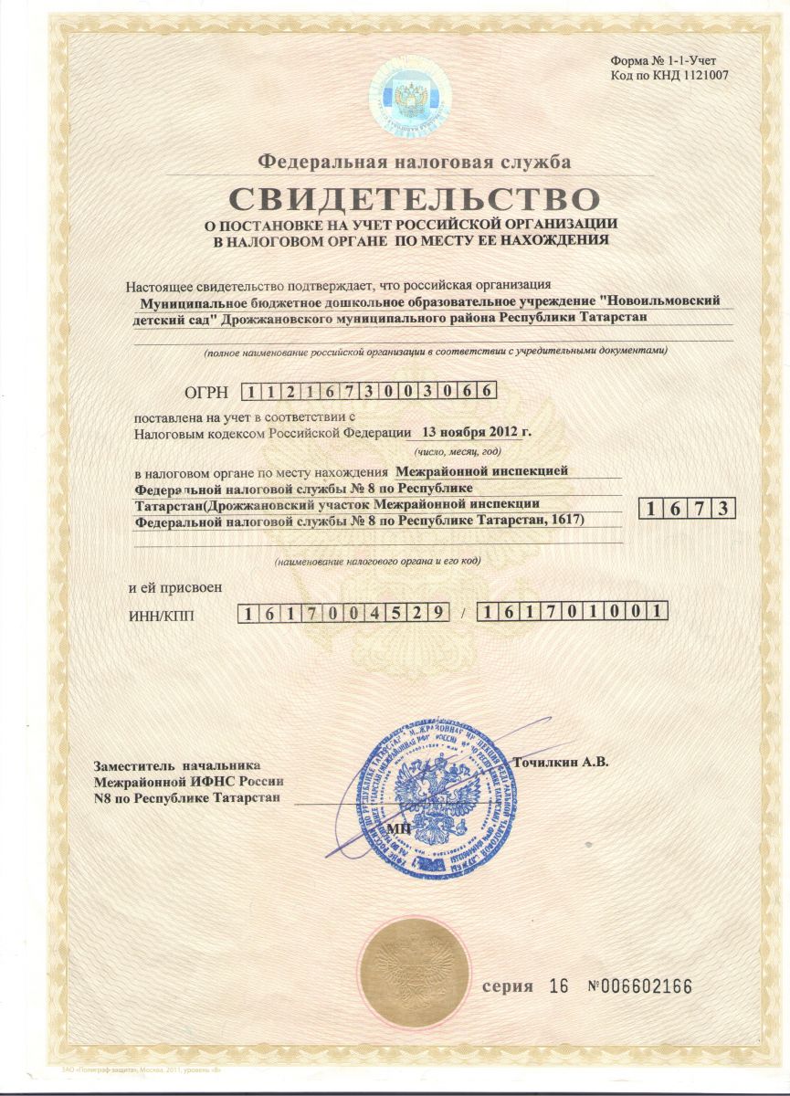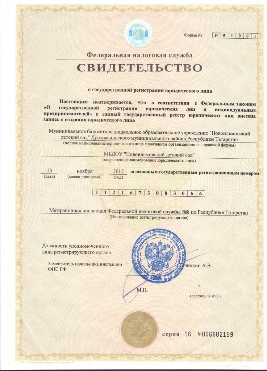 Свидетельство о государственной регисстрации юридического лица от 13 ноября 2012 г.