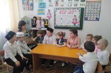 Фольклор - это устное народное творчество. Познакомила детей с татарским фольклором, дала представление о татарских народных песнях, плясках, хороводах, , запевках; познакомила детей с элементами народных обрядов и праздников. Нам хочется, чтобы дети узнали истоки отечественной культуры, обычаи татарского народа, которые возникли в далеком прошлом, ведь недаром говорят: «у народа, который не знает своего прошлого, не может быть будущего. Читала детям татарские сказки «Ике кыз», «Сертотмас үрдәк”, отгадывали загадки.