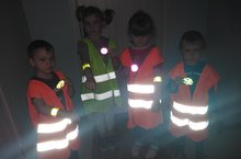 Тёмная дорога опасна и полна неожиданностей, тем более для детей пешеходов. Не маловажным фактом для снижения аварийности в темное время суток является использование пешеходами светоотражающих элементов в одежде. Дети узнали как светятся светоотражающие браслеты в темноте.