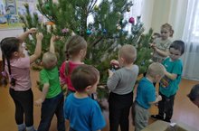 Елка наряжается –Праздник приближается.Новый год у ворот,Ребятишек елка ждет.Елочку смолистую,Стройную, душистуюСами украшали мы,Сами наряжали мы. -