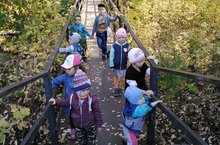 Җылы көз көннэре дәвам итә. Без һавага чыктык, табигатьтәге үзгәрешләрне күзәттек. Уен мәйданчыгы янындагы күпергә килдек, күпер янындагы агачлар саргая башлаган, алар алтын төскә кереп, шаулап утыралар. -