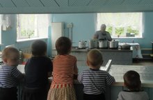 Без мәктәп ашханәсенә юл тотабыз. Ел барышында шушы урында пешекче апа пешергән тәмле ашларын безгә ашатты. Без аның эшләвен күрәсебез килде. -