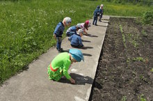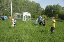 Ишек алдын яшел чирәмнән чистартабыз. Һәрвакыттагыча балалар безнең белән кайнашалар. Аларның сүзләре дә, сораулары да бик күп. Эш барышында аларга аңлатып та, җавап биреп тә торырга туры килә.