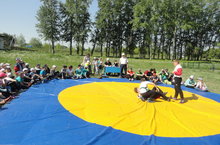 Мәктәп спорт мәйданчыгында татарча көрәш түгәрәге буенча еллык эшләгән эшләренә нәтиҗә ясадыр. Бик күңелле күренеш карадык.