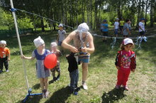 Мәктәп алды ял лагере балалары белән бергәләп саф һавада уеннар уйнадык. Өлкәнерәк балалар белән уйнау кызыклы да, күңелле дә.