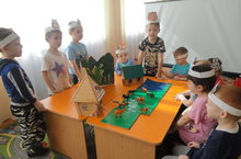Авыл культура йортында мәктәп укучылары "Сер тотмас үрдәк" әкиятен сәхнәләштереп күрсәттеләр. Без тамашычылар булып катнаштык. Кечкенә артистлар үз рольләрен бик торышып башкардылар. Без алар белән фотога төштек.