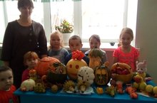 Көзге уңыш җыеп алынгач яшелчә, җиләк- җимешләрдән төрле төрдәге фигуралар ясап куйдык. Эшләребез белән мәктәп күргәзмәсен тулыландырдык. -
