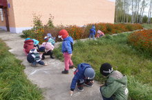 Последние солнечные дни осени. Всем детям раздали мелки для рисования и предложили нарисовать рисунок на тему "Наш мир". Дети рисовали на асфальте солнце, радугу, море, деревья, дома, цветы. Затем вместе с родителями оценивали рисунки. -