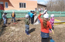 Совместная работа. «Село наш дом родной – пусть будет чисто все кругом» уборка территории детского садика.У детей следует воспитывать трудолюбие, стремление к труду, бережливость, аккуратность, умение замечать непорядок и устранять его по собственной инициативе. Ребенок должен понимать, что в каждую вещь вложен труд людей, и поэтому он обязан бережно относиться ко всему, что окружает его дома, на улице, в общественных местах. -