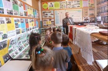 Шәрәф абый Мөдәриснең туган көне уңаеннан бакчада тәрбияләнүче балалар мәктәп музеенда булдылар. Рәфәгать Бариевич мәктәп тарихы белән кыскача таныштырды. Музейда Шәрәф абый истәлегенә багышланган почмак зур урынны алып тора.