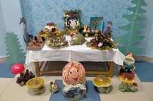 Каждую осень в нашем детском саду традиционно проводится выставка поделок детского и семейного творчества из природных материалов «Осенние фантазии». Главное условие — использование в работах даров осени (овощей, фруктов, ягод, сухих листьев, шишек, желудей, веточек и т. п.). В холодную осеннюю погоду эта ежегодная выставка всегда радует нас яркими теплыми красками, дает заряд бодрости и хорошего настроения. Дети, их родители с большим удовольствием представляют свои работы: оригинальные поделки, которые поразили своей фантазией, техникой выполнения, и неповторимостью. Подобные мероприятия способствуют объединению усилий детского сада и семьи в воспитании и развитии детей, созданию условий для повышения педагогической культуры родителей, развитию детского и семейного творчества!