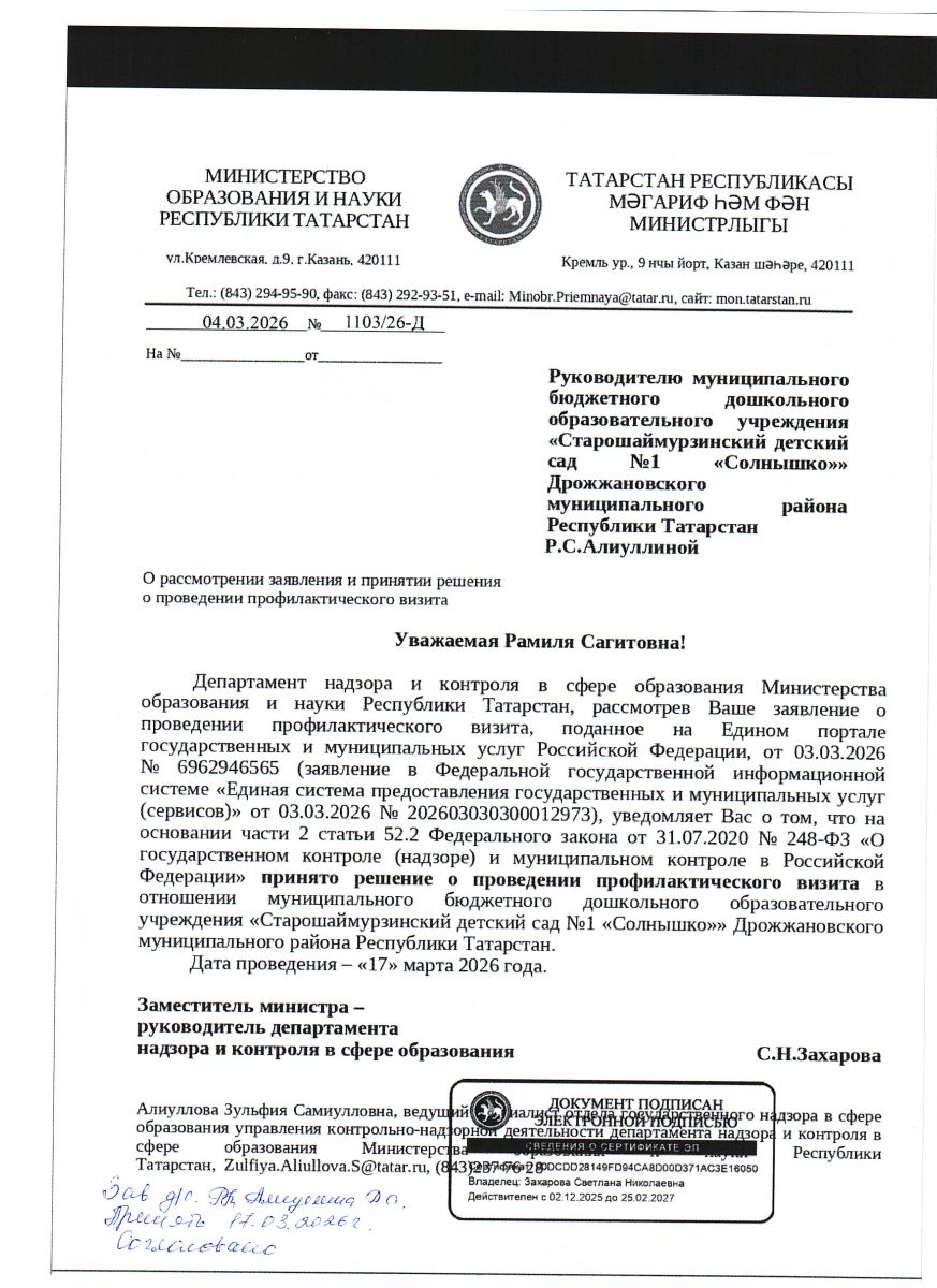 МБДОУ "Старошаймурзинский детский сад №1 "Солнышко" ДМР РТ