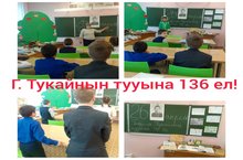 Тукай в наших сердцах! 26.04.2022 Габдулла Тукай вошел в историю татарской литературы как великий поэт, который заложил основу национальной поэзии и создал ее классический стиль. Прожив короткую жизнь, Тукай оставил огромное наследие, почти половину которого занимает детская литература. Любовь к родному языку, к родному краю, его природе у нас рождается с рассказанных детских стихов и сказок Тукая. Его произведения приучают детей к труду, учат быть добродушными, честными, умными, справедливыми. 26апреля 2022года в МБОУ «Старочукалинская ООШ», в школьной библиотеке была проведена литературно-музыкальная перемена “Милләтемнең йөзек кашы”, приуроченная к 136 - летию великого татарского поэта. На мероприятии приняли участие учащиеся 5-6 классов. Ребята узнали много нового из биографии поэта, послушали воспоминания современников о великом сыне татарского народа – Габдулле Тукае. Читали стихотворения, в которых он затрагивал тему Родины, родного языка, жизни простого народа. Также в ходе встречи учащиеся отгадывали названия сказок и стихов поэта по иллюстрации, отгадывали загадки. А в конце все вместе исполняли песню «Туган тел». Библиотекарь Ахметова Л.Х., подготовила для читателей книжную выставку “Мәңге яши, яшьни яшь Тукай!”, на которой можно было поближе ознакомиться с творчеством Тукая.