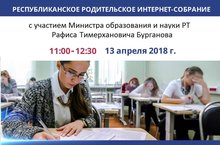 13 АПРЕЛЯ В 11.00 ЧАСОВ СОСТОИТСЯ РЕСПУБЛИКАНСКОЕ ИНТЕРНЕТ - СОБРАНИЕ С УЧАСТИЕМ МИНИСТРА ОБРАЗОВАНИЯ РТ БУРГАНОВА РАФИСА ТИМЕРХАНОВИЧА. ПОДРОБНЕЕ