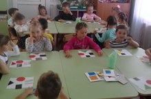 Вот так проходят занятия по математики в старшей группе. В ходе занятия дети закрепляют геометрические фигуры, формируют пространственно-временные представления и ориентируются на листе бумаги, понимая смысл пространственных отношений (верхний левый и правый углы…)