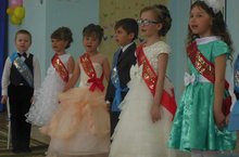 На выпускной бал дети пришли очень нарядными-девочки в красивых платьях, а мальчики в костюмах.