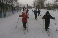 Сегодня с детьми старшей группы провели соревнование по лыжным гонкам.