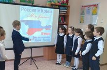 18 марта - день присоединения Крыма к России, это важное историческое событие! Сегодня, 18 марта педагоги начальной школы с ребятами вспоминали события, которые способствовали воссоединению Крыма с Российской Федерацией. Учителя показали ребятам презентации, фильмы, связанные с этим событием. Все ребята слушали с интересом, задавали вопросы. Уроки оправдали все поставленные цели и задачи.