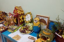 Осенью есть овощи, фрукты, в лесу можно найти множество шишек, желудей, разноцветных красивых листьев. Из осенних атрибутов можно сделать много интересных красивых поделок. Вот и ребята нашей начальной школы сделали чудесную выставку "Дары осени". Ребята для изготовления поделок использовали фрукты и овощи, листья, палочки из разных конструкторов, домашние куклы, подсвечники, ракушки, сено, траву. Эту выставку с удовольствием смотрят учителя и все учащиеся нашей школы. -