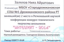 18 мая 2014 года обучающийся 10б класса Залялов Нияз участвовал в Региональной научной конференции-конкурсе технического творчества школьников «Интеллект-2014» и занял второе место (руководитель Тазетдинов Ш.Х.). Поздравляем!