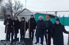 Тимуровцы помогли почистить снег пенсионерке Фаизовой Л.Ф.