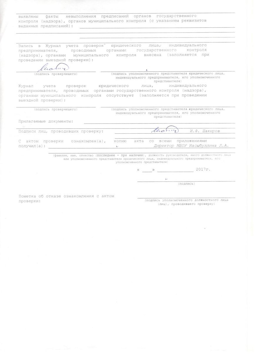 Предписание об устранении нарушений в МБОУ "Стародрожжановская сош №1" ДМР РТ №2
