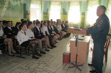 Сегодня в рамках месячника "Внимание, дети!" прошла встреча с начальником управления министерства по делам гражданской обороны и чрезвычайным ситуациям РТ по Дрожжановскому муниципальному району Битяковым В.Е., который провёл беседу с учащимися о том, как надо действовать при чрезвычайных ситуациях, продемонстрировал видеоролик о службе 01 и провёл агитационное мероприятие по профориентационной работе, пригласив учащихся на экскурисю в Пожарную часть.