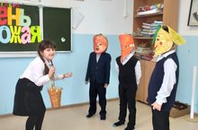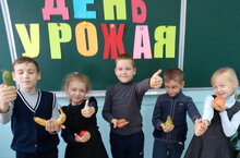 Сегодня классный час был посвящен дню урожая. Учащиеся 1,3 классов подготовили и показали сценку "Таня и овощи". Дети разгадывали загадки про овощей, пели песню "Урожайная".