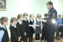 Инспектор ГИБДД Хузеев А. торжественно вручил членам отряда ЮИД тетрадь юного пешехода 11.02.2015