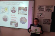 В рамках "Осенней недели добра" в начальных классах были проведены классные часы "Хочу делать добро" с использованием учебного видеофильма "Урок доброты". Проведен конкурс рисунков "Делать добро – это здорово!", целью которого является развитие потребности делать добро, воспитание добродушного отношения к окружающим людям.
