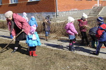 Воспитатели детского сада заботятся о здоровье воспитанников, и стараются как можно больше времени проводить на свежем воздухе