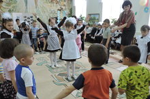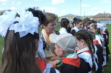 Сегодня учащиеся начальных классов организовали праздничный концерт для детей детского сада "Солнышко" : исполняли песни, рассказывали стихи, танцевали. Учащиеся старших классов убирали территорию парка и мечети.