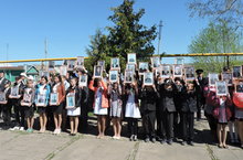 70 лет назад отгремела Великая Отечественная война.... Дорогой ценой была оплачена эта Победа. Священна для нас память героев, отдавших свои жизни ради будущих поколений. Безмерно уважение к тем, кто выжил и победил. С каждым годом все отчетливее понимается цена и значение слова Победа, и все глубже осознается подвиг, труд и жертвы, положенные советским народом на алтарь Победы. Учителя и учащиеся нашей школы приняли участие в акции « Бессмертный полк». С фотографиями дедов, прадедов - участников войны, прошлись они по улице Ленина к памятнику нашим землякам. Пришедшие на митинг односельчане узнавали в молодых лицах свих родных, друзей. Мы помним , ценим и чтим, всех , кто ценой своей жизни подарил жизнь нам и нашим детям.