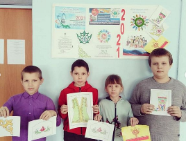 В рамках проведения Года родных языков и народного единства, на уроке ИЗО Гелюся Алимзяновна провела конкурс "Национальный орнамент", нужно было нарисовать узоры. Учащиеся собирали и изучили национальные узоры татарского и чувашского народов. Они очень старались.